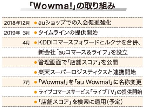 KDDIとauコマース&ライフ(本社東京都、八津川博史社長)は7月11日、両社が運営するECモール「Wowma!(ワウマ)」の名称を「au Wowma! (エーユーワウマ)」に変更すると発表した。7月25日以降から変更する。「au」ブランドを冠した名称に変更することで、スマホを中心としたコマースサービスの提供を目指す。同時に7月下旬以降、「エーユーワウマ」アプリにおいて、ライブコマースサービス「ライブTV」を開始することも明らかにした。