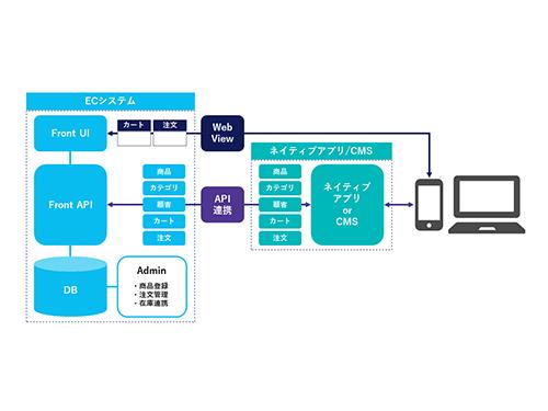 SSSはECサイトだけでなく、ネーティブアプリやオムニチャネル機能を構築できる。提供を開始する「API―Express」は、ネーティブアプリやCMSとAPI連携できるECシステムのみをまとめたライセンス提供となるため、従来に比べて比較的安価に導入できる。