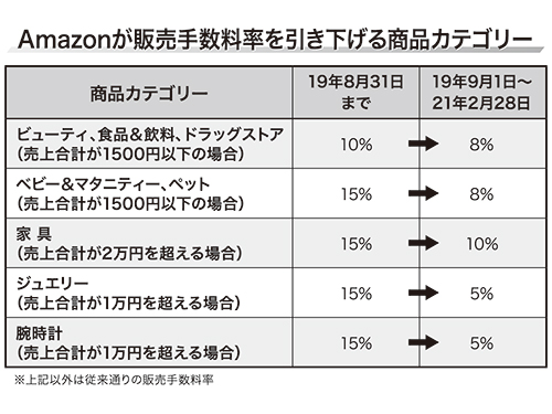 「今回の値下げは、型番商品が目立つ一部のカテゴリーの、単価の安い商品や、手数料が高額になりやすい商品が対象になっている。Amazonはキャッシュレス・ポイント還元事業に参加しているが、手数料の割引などの優遇措置はまだなかったので、今回開始するのではないか」(比良社長)と話している。