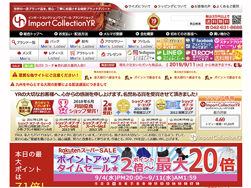 アイシーネットは主に、ブランド品の輸入販売を行っている。「Import Collection YR(インポートコレクションワイアール)」のショップ名でネット通販を展開。