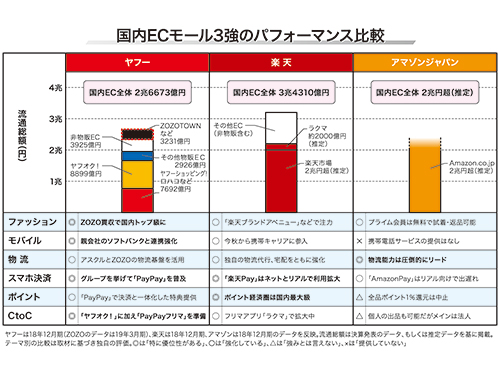 流通総額の数字や手にした資産だけを比べると、ヤフーがECモールの3強に入ったといえるが、話はそう簡単ではない。