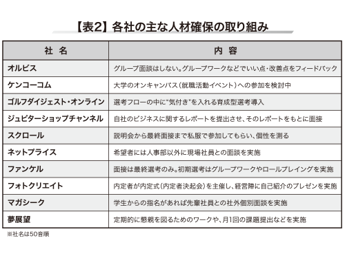 求める人材と出会えても、新卒者が数社から内定を得ていて、企業側がふるいにかけられるケースもあり、通販・EC企業にとっても共通の課題となっている。