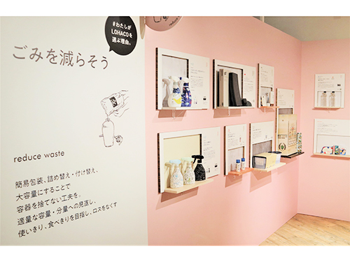 アスクルは10月19~22日、都内渋谷区で「暮らしになじむLOHACO展2019(ロハコ展)」を開催した。5回目となる今回のテーマは「サステナブル×デザイン」。新たに”サステナブル(持続可能性)”をテーマに加え、メーカーと共同開発した商品を展示している。