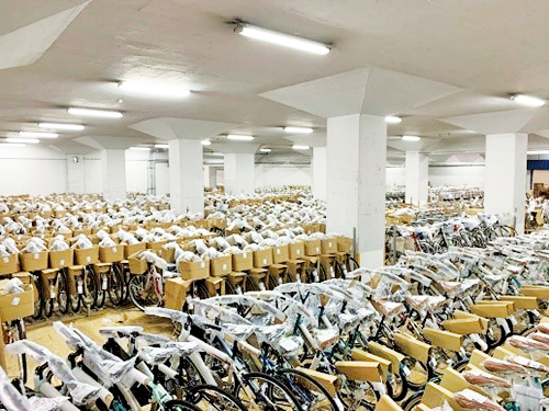「サイマ」では自転車の整備や組み立て、出荷業務を専任の整備士が行う。岐阜、東京、神戸の三カ所に物流拠点を持ち、オペレーションの改善に努めている。
