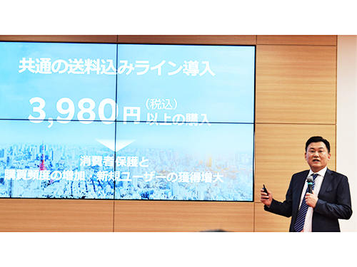 施策の名称変更については、「今回の施策で店鋪が価格を調整できず、(送料負担の)コストが増えるとの誤解がある。『送料無料』という言葉が独り歩きしてしまったことを反省している。正直、『送料無料』の方がエンドユーザーは理解しやすいが、報道を受けて誤解がないように名称を変更した」(同)と説明。公正取引委員会の立ち入り検査の影響については、「あったかないかと言えば、あった」(同)と話した。