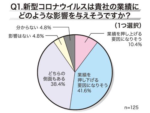新型コロナウイルスの感染が拡大し、EC業界への影響が広がっている。日本流通産業新聞では、通販・EC市場への影響について緊急アンケート調査を実施。EC事業者125社から回答を得た。業績への影響に関する質問では、全体の41.6%が「業績を押し下げる要因になりそう」と回答。具体的なマイナス要因では、「製造・仕入れへの影響」「景気悪化による消費減退」を懸念する声が多かった。