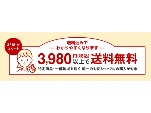 楽天は3月12日、「楽天市場」で3月18日から一部店鋪が先行導入する「共通の送料込みライン(送料込み施策)」において、「安心サポートプログラム」による支援内容を発表した。注文1件当たりメール便なら100円、宅配便なら250円を支援金として支払う。出店者の不安を軽減し、新施策の導入を促すのが狙い。