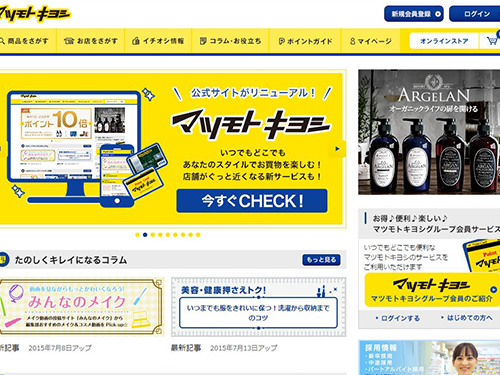同社は7月1日、これまで別々だったホームページや店舗紹介サイト、ECサイトを一つのサイトに統合した。新サイトのマイページ内に「よく利用する店舗」を登録すると、該当店舗の店頭在庫や、店頭での販売価格を閲覧できるようにした。同サービスは、ドラッグストア業界で初めての試みだという。