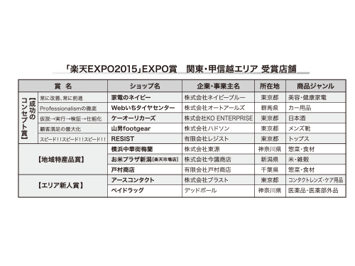 楽天EXPO/関東・甲信越エリアの優れた10店舗を表彰
