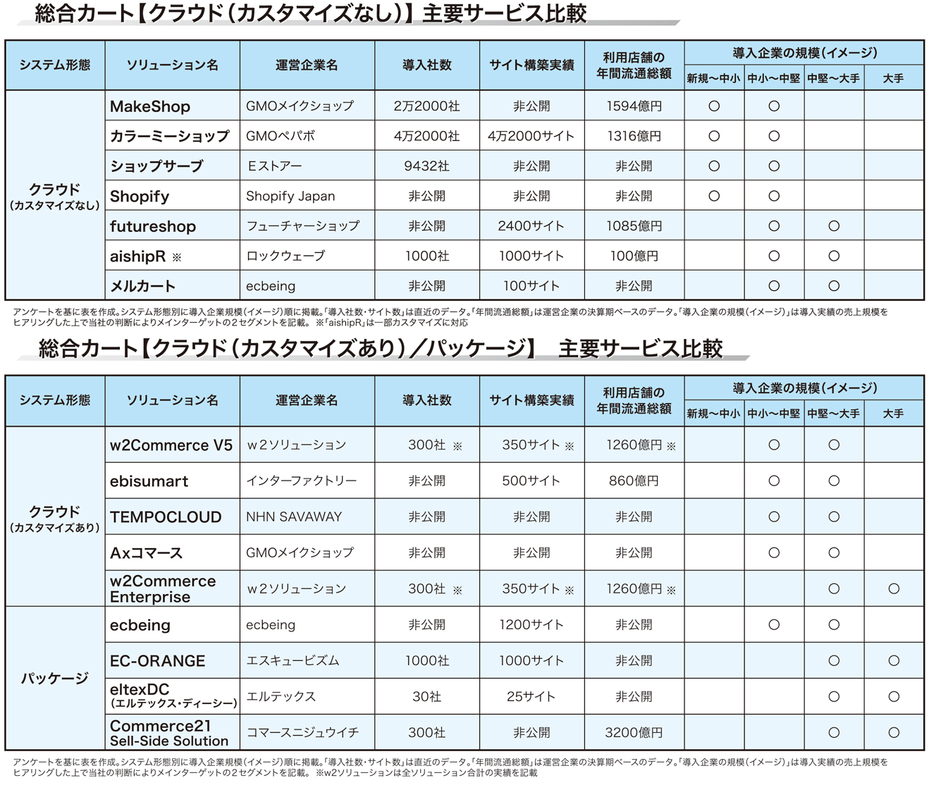 - 【Eコマース業界地図 「ECサイト構築サービス編」特集】 乱立するソリューションを分野別に紹介('19/06/13) (0550)