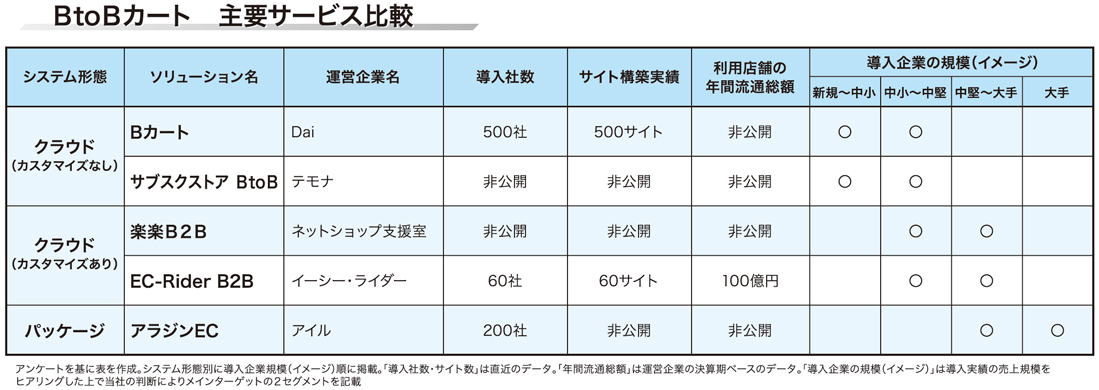 - 【Eコマース業界地図 「ECサイト構築サービス編」〈BtoBカート〉】 Dai〈「Bカート」〉/導入400社、商取引10万社の実績/13年間の経験と実績で信頼厚く('18/06/14)