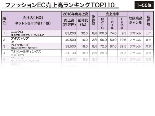 【ファッションEC 2019】 〈ファッションEC売上TOP110発表〉「ユニクロ」が独走/リアルの力でEC成長