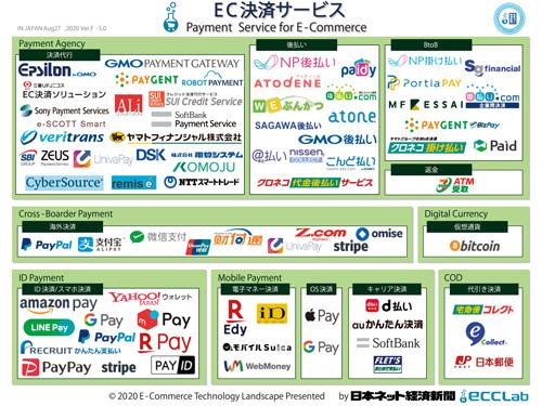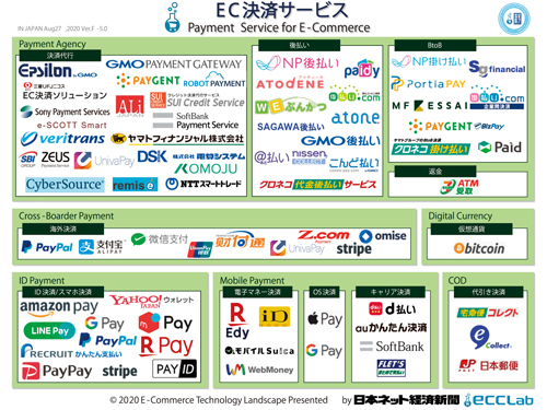 - 【ECソリューションマップ2020「決済編」】 EC活発化に伴い、決済サービス充実('20/08/28) (0607)