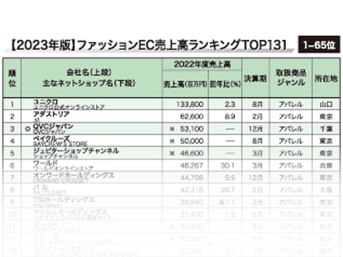 【ファッションEC特集 <ファッションEC売上TOP131>】 コロナ後伸び悩む企業も/ネットとリアル一体の強化策が鍵(2023年12月7日号)