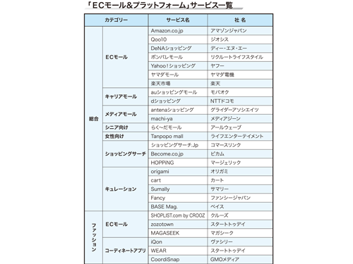 出店料・販売手数料を無料化した「Cart(カート)」のような新興サービスも登場している。「ECモール&プラットフォーム」が増加する中、サービスの差別化競争はさらに進みそうだ。