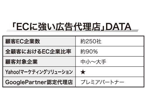 ネット広告代理店としては、ネット広告運用の品質の高さが強みだ。グーグルがパートナーの代理店を表彰するイベントで「品質スコア」部門を2年連続で受賞。リスティング広告のキーワードと広告テキスト、サイトの表示内容に整合性があるかが評価のポイントとなっている。