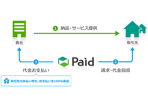 商品の仕入れ代金が支払われないなど、未回収リスクをPaidが保証するのが最大の特徴となる。新規取引を行う際の不安を解消し、代金回収に対する企業の悩みに応えている。