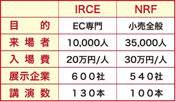 EC専門のIRCEに対してNRFは小売業全般を対象としているため、より多くの参加者が世界中から集まります。