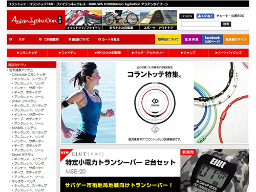 ECサイト「Asian TyphoOon(アジアンタイフーン)」=写真=は掃除機などの家電製品をメーンに販売していた。現在は磁気ネックレスなどの健康機器やスポーツ関連用品などを扱っている。