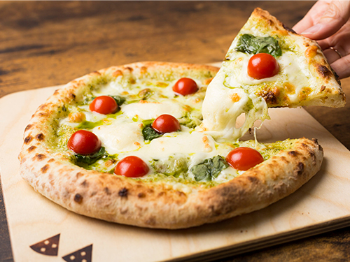 「『手作りで本当においしいピザをご家庭で再現』を目標に開発すること3年。納得のいく生地ができました。自社の製パン技術を生かし、一枚ずつ『手伸ばし手焼き』で仕上げています。ピザは通常、焼成前の生地にソースと具材を乗せて一緒に焼き上げます。一方、当店のピザは、生地のみを高温の釜で焼き、香ばしい香りと食感を作ったうえで一旦冷却し、その上に具材を乗せています。これにより、ご家庭で加熱したとき生地が乾燥した状態にならずに本格的な焼き色と風味が、具材には焼きたてのおいしさがもたらされます」