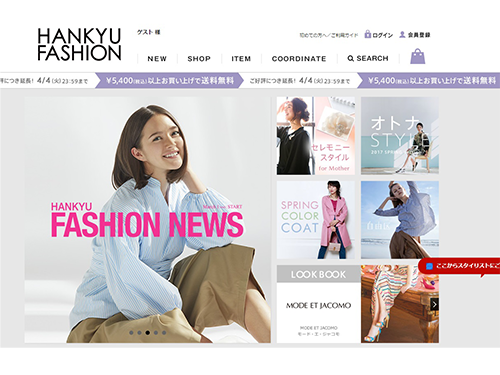 阪急阪神百貨店(本社大阪府、荒木直也社長)は3月22日、女性向けファッション通販サイト「HANKYU FASHION(ハンキュウ・ファッション)」と、男性向けファッション通販サイト「阪急 MENS ONLINE STORE(メンズオンラインストア)」を開設した。