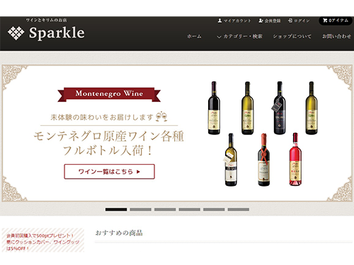 ECサイト「Sparkle(スパークル)」=写真=は国内の有名ソムリエが監修したモンテネグロ産ワインのほか、北欧メーカーが製造した最新のワイングッズなど約250品目を取りそろえている。