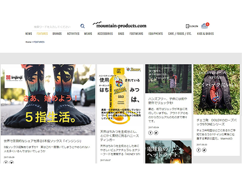 モール型のECサイト「01mountain―products.com(マウンテンプロダクツドットコム)」=写真=は、アウトドア用品の魅力を伝えるため、動画や写真を駆使した商品紹介を行っている。