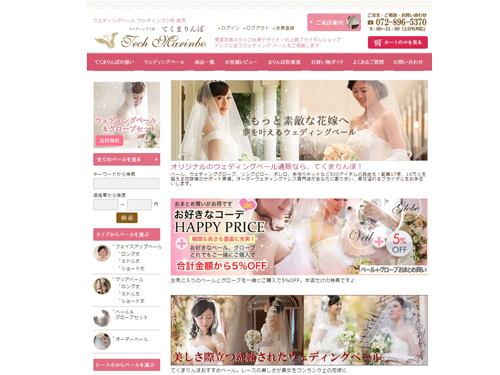 マリアベールやオーダーメードのウエディングドレスを販売する大阪府枚方市「てくまりんぼ」のネットショップの開設は01年。もともとはデザイン工房とネットショップという形態でスタートしたが、試着やデザインの打ち合わせなどでお客さまが来店する機会が増え、今年4月から土・日曜と祝日はネットの発送業務を休み、実店舗での接客に専念することにした。