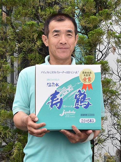 鹿児島県垂水市でミネラルウォーター「寿鶴(じゅかく)」を販売する垂水温泉鶴田。桜島に程近いこの地で源泉を発掘し、浴用温泉としての利用を考えていたところ、「この水を飲んで体調がよくなった」と口コミで広がり、〝飲む温泉水〟として商品化。おいしさと安全面で高い評価を受けている。商品の特徴、反応などについて、迫田工場長に聞いた。