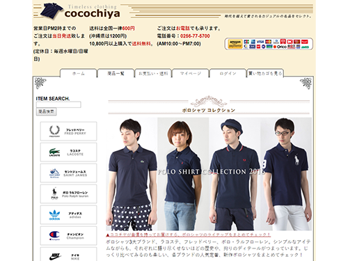 「ココチヤ」は「定番」と呼ばれるポロシャツやジーンズなどを専門に扱うネットショップである。06年に楽天店、09年に自社ドメインショップを開設した。