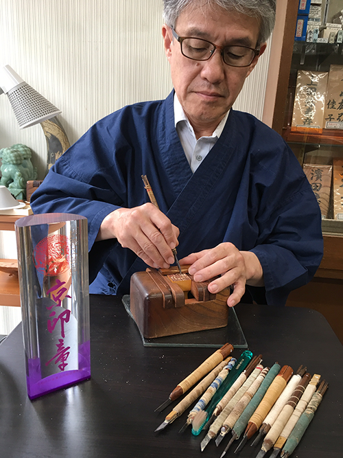 「他のいくつかの地域ブランド業界では、その生産者の身勝手な行動により世間から〝安物〟呼ばわりされ、ブランドそのものが地に落ちるという事例が散見しています。京印章においてはそのようなことがないよう基本ルールを厳守し、京印章ブランドを国内外に広めたいと思っています。当店の特徴は、特に印章において、事前にデザインをお見せし、お客さまが納得するまで校正し、製作していること。最低でも2種類、ご要望があれば変更にも対応します。このサービスは手間暇とエネルギーを必要とし、また確かな技術がないとできません。価格の安さで勝負するサイトとは違い、価格以上の付加価値として納得と満足、安心を購入していただきたいと考えています」
