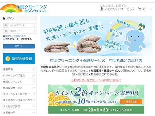 「布団クリーニングきららウォッシュ」のトップページ
