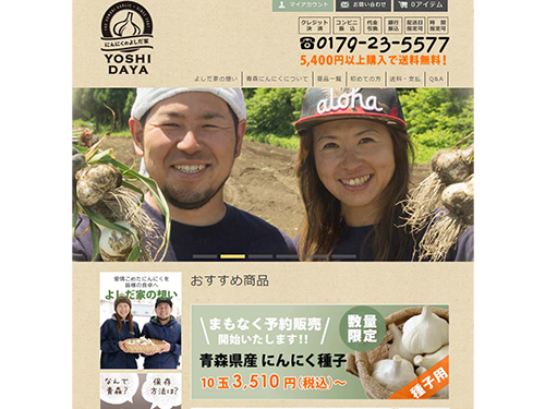 サイトには(1)よしだ家の思い(2)よしだ家のあゆみ(3)何で青森がにんにくの産地なのか(4)にんにくの特徴(5)その他のにんにく情報ーーーといったコンテンツが掲載されています。