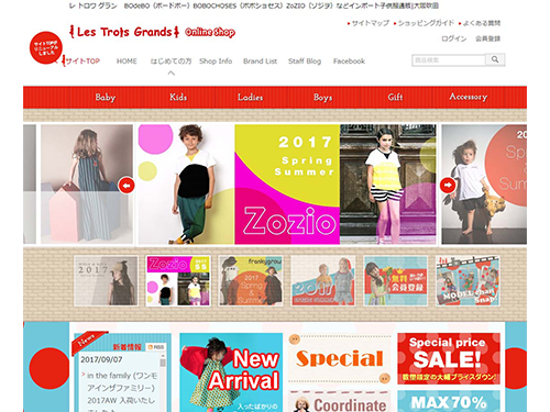 「BodeBO(ボードボー)」や「BOBO CHOSES(ボボショセス)」「ZoZIO(ゾジヲ)」といったインポートブランドを大阪府・千里山にある実店舗で販売しています。実店舗に加えてECサイトの運営にも力を入れています。