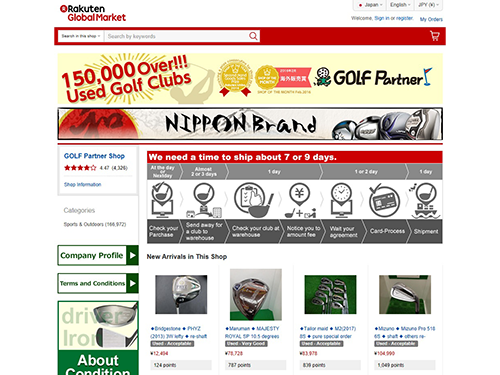 16年1月、楽天グローバルマーケットに「GOLF Partner Shop(ゴルフパートナーショップ)」=写真=を開設した。