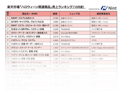 - 【EC売り方研究所】《楽天市場のハロウィーン商戦》商品別売上TOP30発表/上位店の販売施策も紹介('17/11/17)