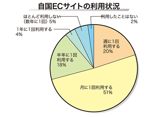 調査は8月30日から9月11日まで、ジーリーメディアグループが運営する情報サイト「樂吃購(ラーチーゴー)!日本」内で行った。調査対象者は台湾人3184人と香港在住の中国人91人。調査結果によると、調査対象のうち自国のECサイトを「月1回以上利用している人」は71%だった。