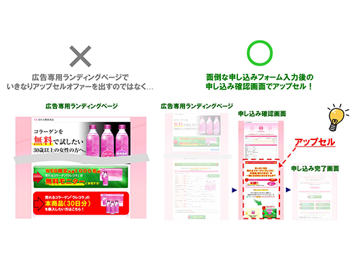 しかし、オフラインと違って、ネット通販では、アップセルにことごとく失敗しているケースが多いです。その理由は、ネット通販ではショッピングカートシステムでお客さまがシステマチックに商品を申し込むので、コールセンターのように〝人間〟が臨機応変に対応することができないからだと言われてきました。しかし、それは間違いです。実は、アップセルを成功させるために一番重要なのは「タイミング」なのです。