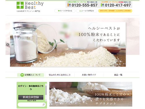 大阪市で栄養補助食品などを製造・販売するヘルシーベストは、三代続く粉末食品原料メーカーの小売部門として05年に開設された。自社ドメインショップのほか、楽天とアマゾンにも出店している。