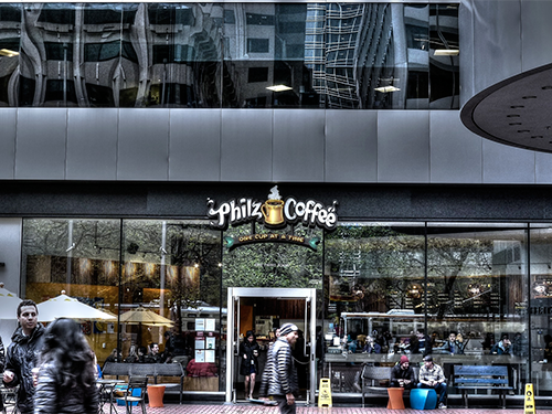 「フィルズコーヒー」は、比較的小ぶりなお店ですが、後から調べてみると、何と1店舗当たりの年間売上高は平均170万ドル(約1億9000万円)で、スターバックスコーヒーの120万ドル(約1億3000万円)を大きく上回るとのこと。