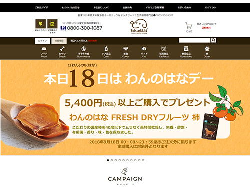 静岡県清水町のエコ・プラン二十一が運営するネットショップ「わんのはな」は、感度の高い愛犬家や愛猫家向けにペットフードやボーノサルテ、シャンプーやペット雑貨などを販売している。