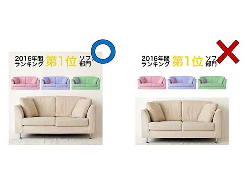 これらの点を抑えてしっかりと対策すれば、画像の中の商品の訴求ポイントを「0」とする必要はありません。テキスト占有率20%以下のルールさえ守れば、「送料無料」「あす楽」「ポイント10倍!」「○○年保証!」などといった、店舗独自の訴求ポイントをユーザーに伝えることができるのです。