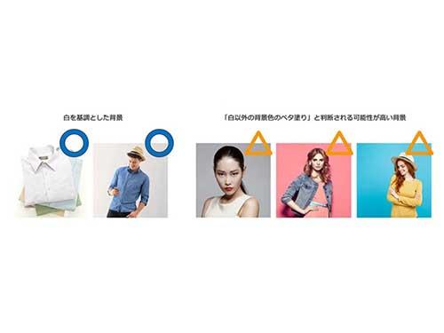 (3)の背景について、第一商品画像では、単色白ベタ塗り、もしくは「写真背景」の利用を、出店者に求めています。
