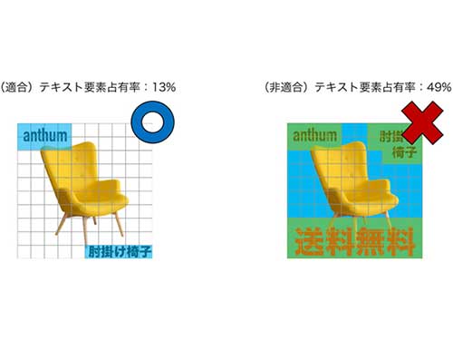 テキスト要素は、第一商品画像の20%以下と規定されています。
