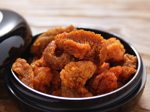 天たつの「越前仕立て汐うに」は、「長崎野母のからすみ」「三河のこのわた」と並び、江戸時代より日本三大珍味と称されてきた名品だ。