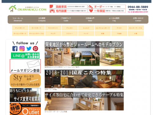 トップページでは、商品画像よりも先に「関東地区から弊社ショールームへのモデルプラン」というコピーのバナーが目に入る。全国的にも有名な家具産業の集積地・福岡県大川市所在の大川家具ドットコムのネットショップはユニークである。