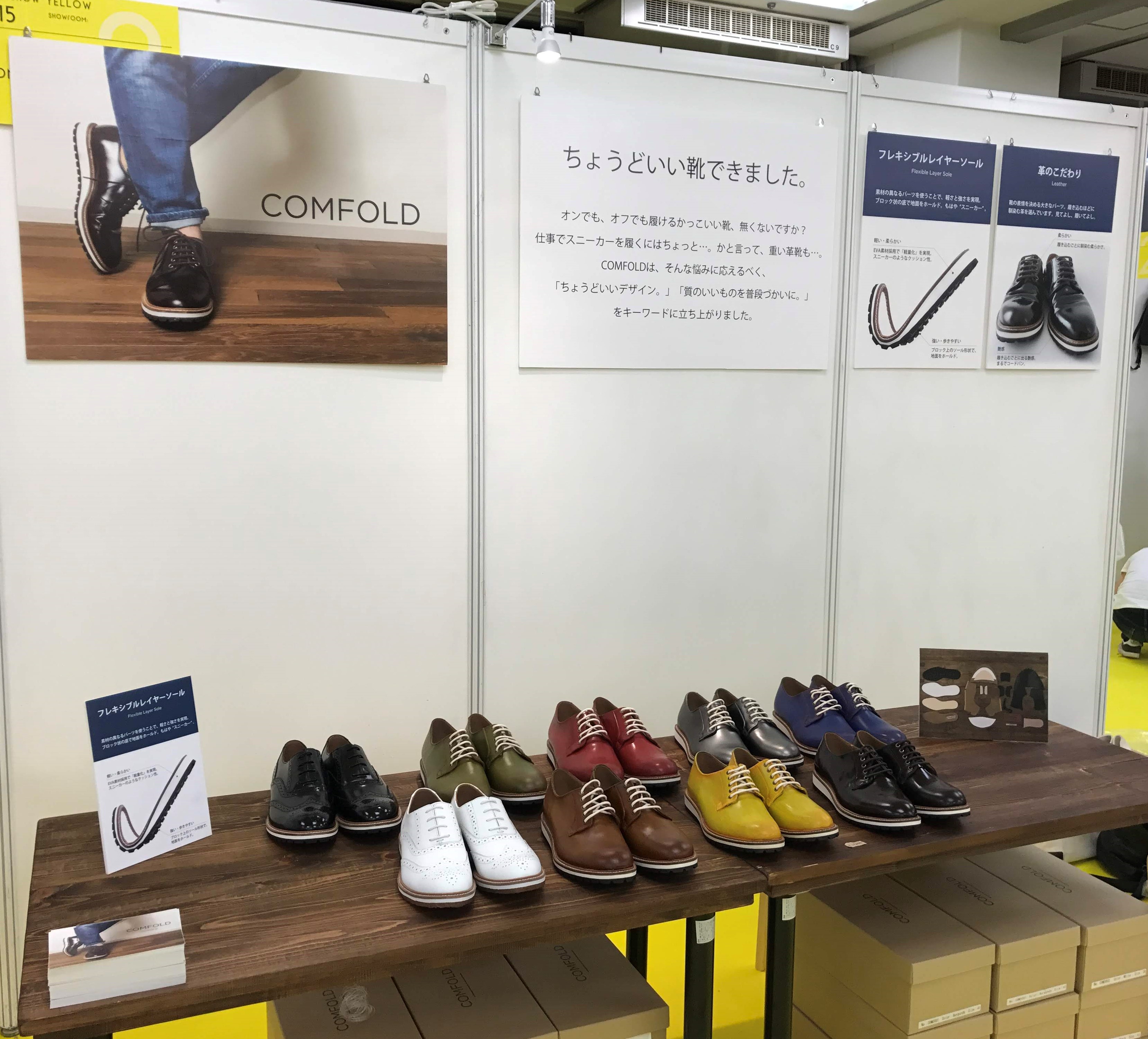 「COMFOLD(コンフォールド)」は、メンズ靴のブランドです。実際に試着をしたいという声が多く、僕自身もお客さまの反応を見たいということで、展示会へ出展しました。
