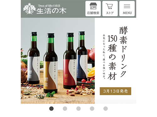 「生活の木」は、「自然・健康」をテーマにしているハーブとアロマテラピー専門店だけあって、ホームページやECサイトのデザインは清潔感とセンスがある。ページのレイアウトは統一感があり、見やすくなっています。