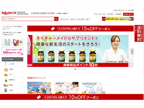 「楽天24」では、なんとか「アマゾン」に対抗すべく、楽天が運営する「ケンコーコム」の3500円(税抜)以上より安い2500円(税抜)以上という送料無料ラインを設けています。