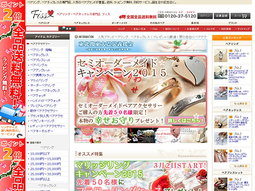 そんな中、今回勝手にECサイト分析するのは、「ペアリング、ペアネックレス専門店フィス」だ。